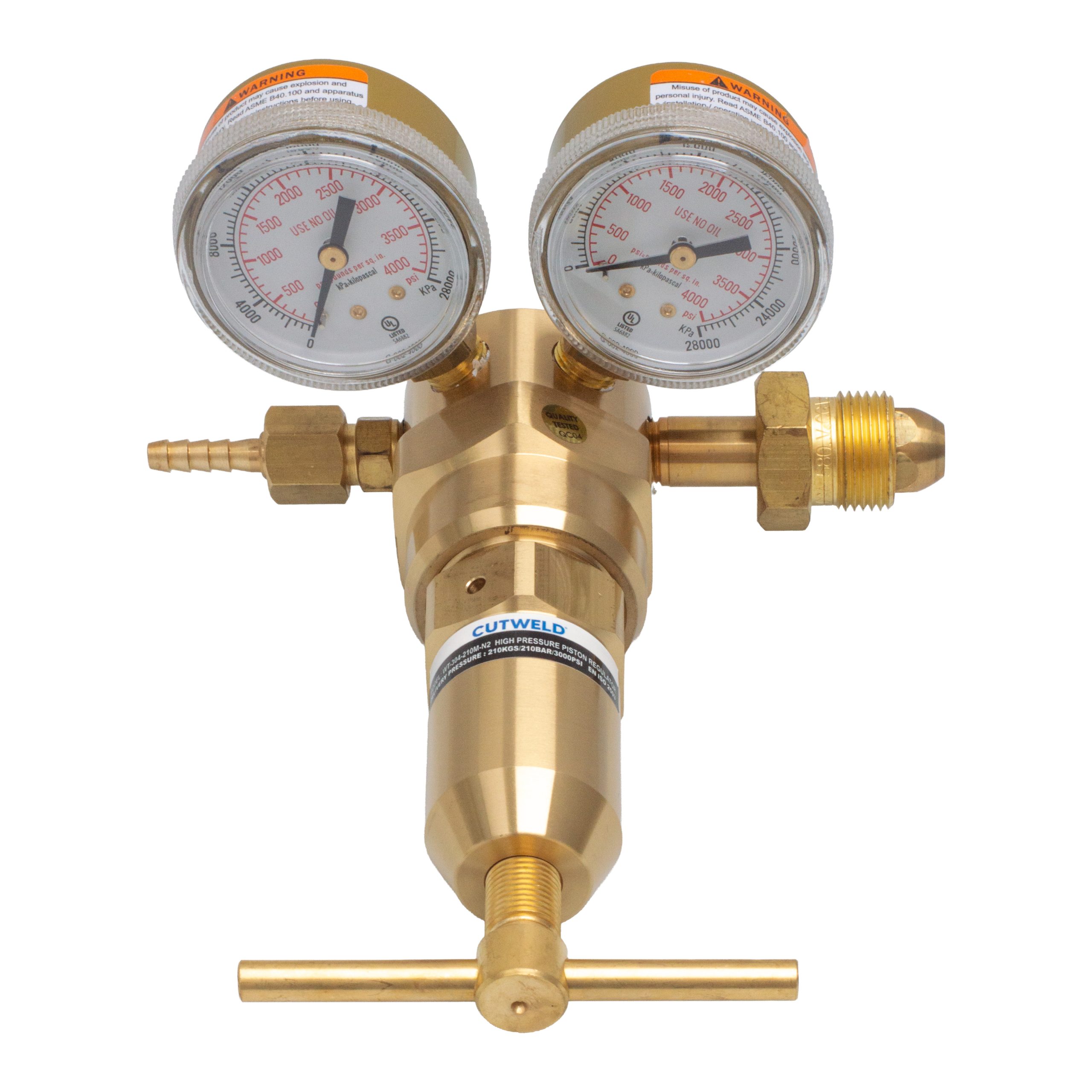 Regulador de alta presión tipo pistón CUTWELD – modelo WT-304-210M. Diseñado para una amplia gama de capacidad de flujo y suministro de presión.